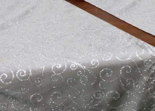 - Silver Satin Table Runner with Silver Glitter Swirls