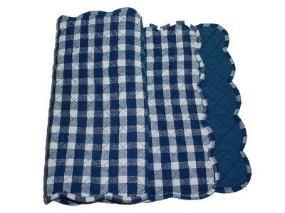 - Navy Check Table Runner 36" x 13" All Cotton Rever...